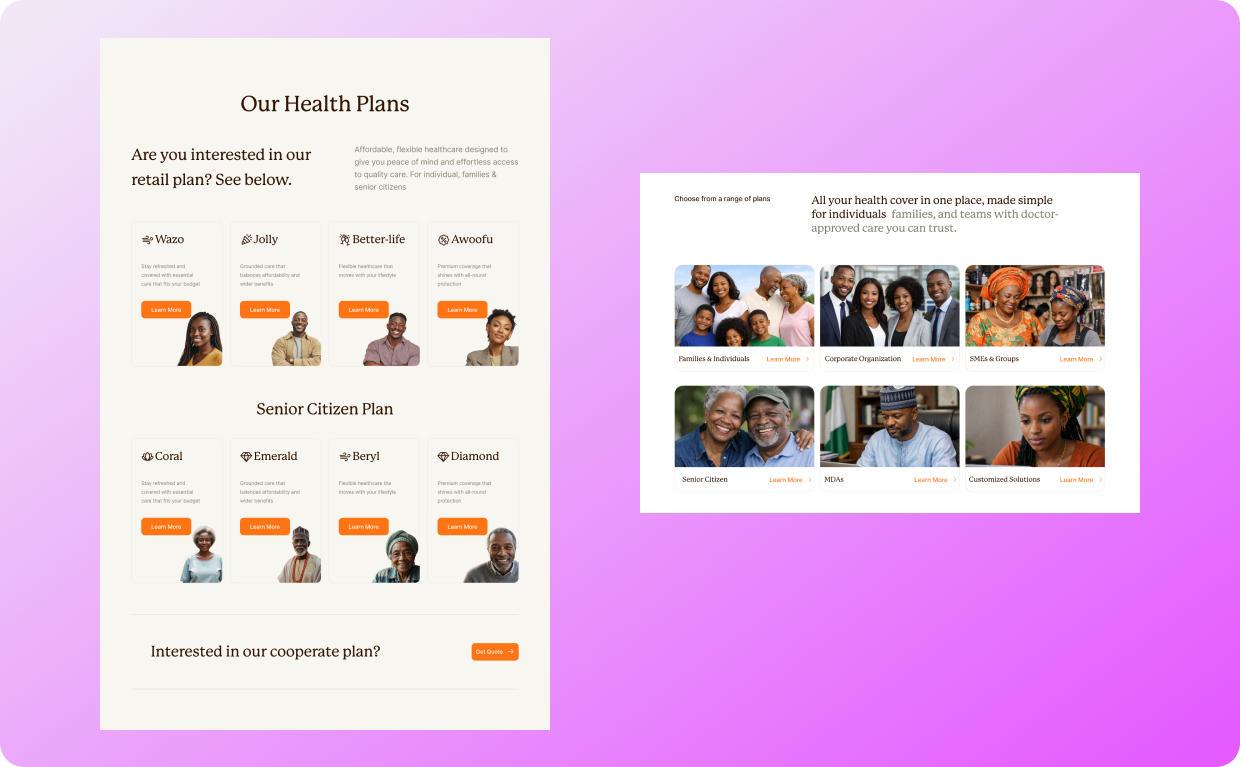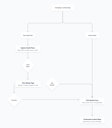 I reviewed multiple health insurance and HMO websites, exploring plan discovery, enrollment, claims information, and customer support flows to understand how users interact with existing solutions.